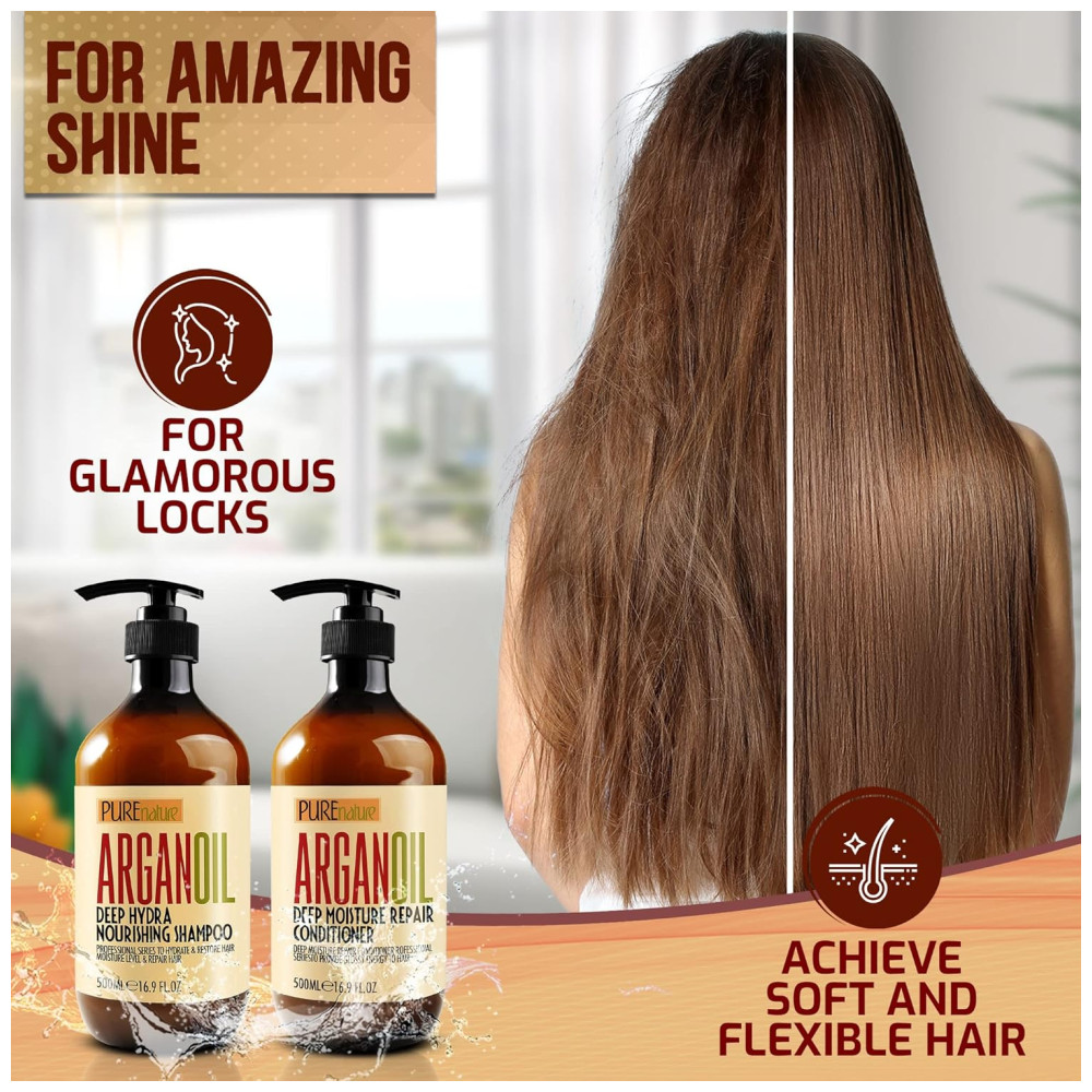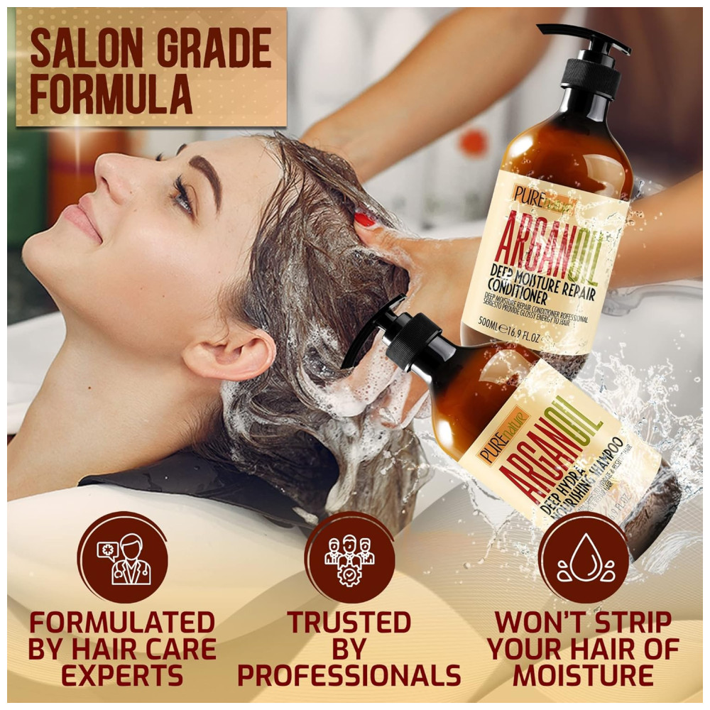 Shampoo e Condicionador Óleo de Argan Marroquino Cabelos Danificados Secos e Finos 500ml PURE NATURE LUX SPA Marrom Escuro