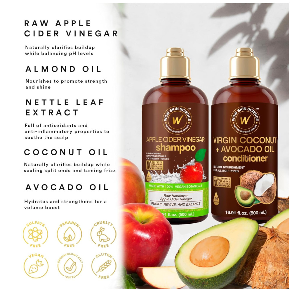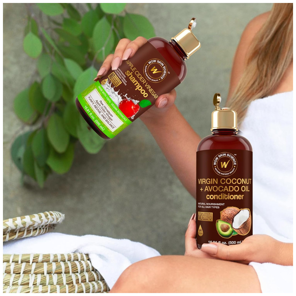 Reparação de cabelos danificados o conjunto de xampu e condicionador WOW usa óleo de coco e abacate virgem para rejuvenescer cabelos fracos, finos ou danificados ou couro cabeludo seco. A formulação de ambos os óleos reabastece a nutrição perdida, essencial para manter os cabelos fortes e macios. CABELO CLARIFICANTE E SAUDÁVEL Desintoxique o cabelo e o couro cabeludo seco para limpar os acúmulos cas por produtos de sujeira, sujeira e estilo. O vinagre de maçã remove a sujeira que danifica o cabelo. Rico em proteção vital para apoiar o crescimento saudável do cabelo para homens e mulheres. MAXIMIZE A FORÇA DO CABELO Melhore a sua rotina de limpeza capilar usando os dois para obter os melhores resultados duradouros. Enriquecido com proteínas essenciais de queratina, vitaminas B5 e E, e extrato de Saw Palmetto para ajudar a hidratar, amaciar e fortalecer os fios de cabelo. REDUZIR A PERDA DO CABELO O Saw Palmetto ajuda a retardar a queda de cabelo e a calvície masculina, reduzindo a quantidade de fios de cabelo que caem durante o banho. Com um pouco de paciência, seu cabelo terá mais volume e ficará mais macio, espesso e natural. INGREDIENTES NATURAIS O conjunto de shampoo e condicionador hidratante clareador é hipoalergênico, deixando os cabelos hidratados e macios. Menos propenso a quebra, pontas duplas e queda de cabelo, absorvendo nutrientes e vitaminas essenciais