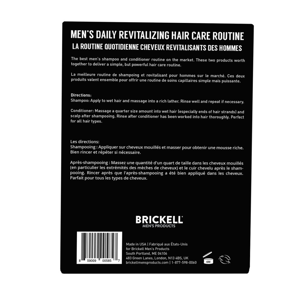 O que faz o conjunto de produtos para cabelo para homens contém os dois melhores produtos para cabelos orgânicos, para os homens criarem cabelos mais fortes, cheios e saudáveis através de uma combinação única de ingredientes naturais. Para quem Homens de qualquer idade com qualquer tipo de cabelo que desejam cabelos melhores e mais saudáveis. Como funciona esses dois produtos naturais para cuidados com os cabelos para homens trabalham juntos para fornecer uma rotina simples, mas poderosa, para os cabelos dos homens que criam cabelos mais fortes, dão volume e devolvem brilho. Seu cabelo nunca parecerá mais saudável. Ingredientes principais ingredientes orgânicos naturais e certificados, incluindo aloe, vitamina E, óleo de tea tree, proteínas hidrolisadas, pró vitamina B5 e aminoácidos da proteína da seda. Quem somos Brickell cria produtos para a pele e higiene para homens que usam ingredientes orgânicos naturais e certificados. Nossos produtos para cabelo para homens são vendidos em mais de 20 países e apareceram nas revistas GQ, Mens Health, Mens Journal e outras revistas masculinas populares