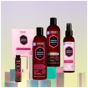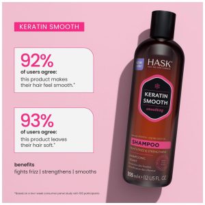 OVERSTYLED Dê aos cabelos danificados e processados uma reforma milagrosa com a HASK Keratin Protein Smoothing Collection, projetada para restaurar, revitalizar e fortalecer os cachos ressecados e crespos INF COM QUERATINA HIDROLISADA Reduzindo o frizz e bloqueando a umidade, este shampoo limpa suavemente, deixando até o máximo cabelos rebeldes, macios e revitalizados com brilho incrível SUPER FORÇA A queratina trabalha para revestir o fio capilar, reduzindo pontas duplas e melhorando a aparência e a capacidade de gerenciamento do cabelo O KIT INCLUI 1 Shampoo e 1 Condicionador para refrescar e revitalizar GRATUITO DE Sulfatos, parabenos , ftalatos, glúten e álcool de secagem