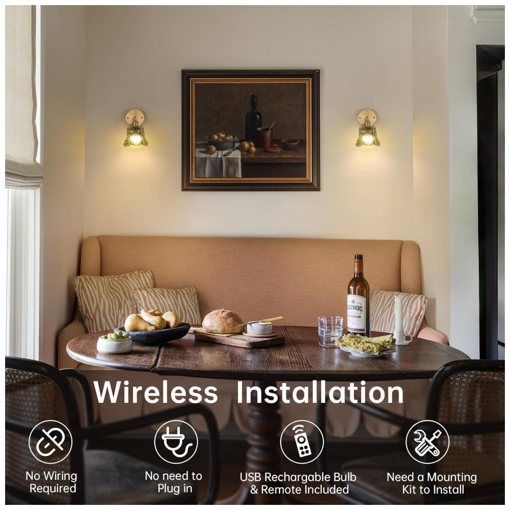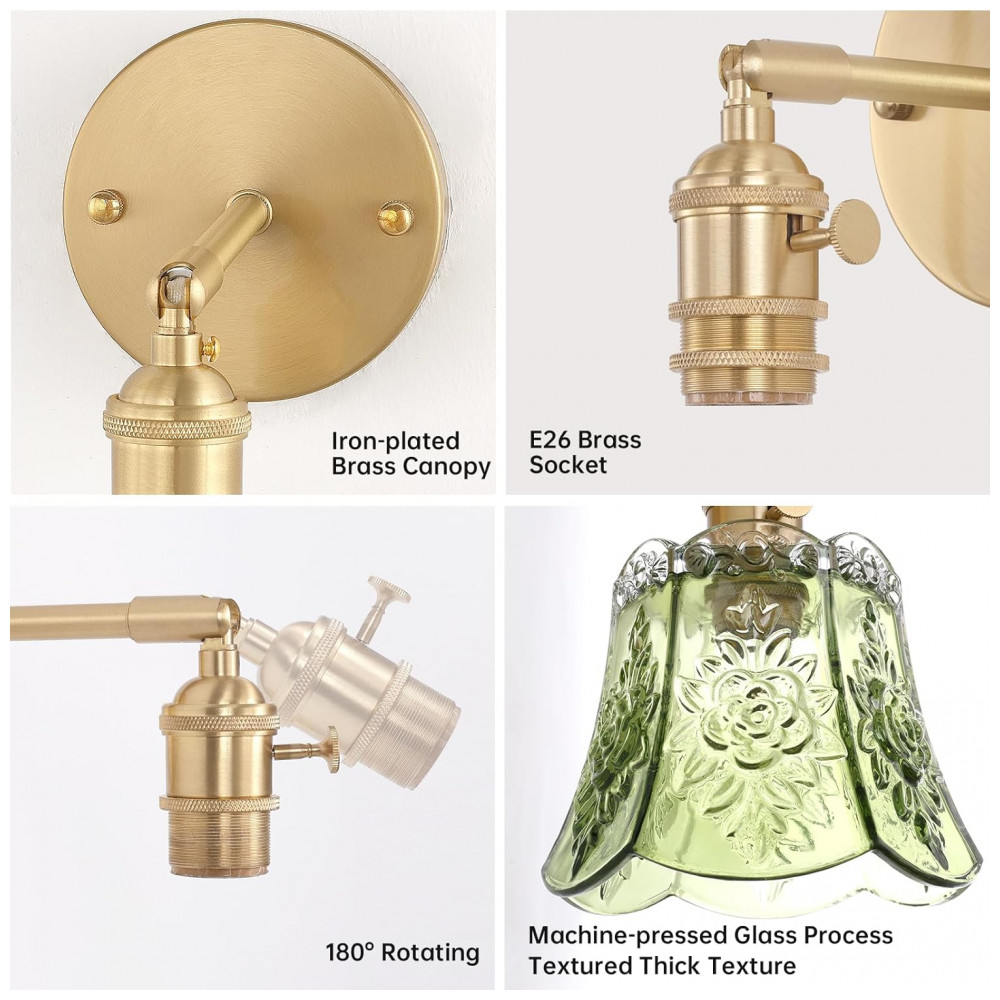 Transforme a iluminação do seu ambiente com o conjunto de duas arandelas vintage da Shenmoyl, perfeitas para criar uma atmosfera aconchegante e sofisticada em quartos, banheiros, salas de estar e muito mais. Cada arandela possui uma lâmpada LED alimentada por bateria, que oferece luz quente de 3000K e 12 cores RGB ajustáveis para você escolher o tom ideal para cada momento. Com controle remoto e toque, é fácil ajustar o brilho e escolher entre diversas cores, além de programar o desligamento automático em 30 ou 60 minutos para maior praticidade. A instalação é simples e sem fios, bastando fixar a base na parede e rosquear a lâmpada, com opção também para instalação com fio. As bases e soquetes de latão possuem acabamento escovado, garantindo resistência à oxidação e um visual elegante que combina com decorações vintage. As cúpulas de vidro com formato delicado de flor e detalhes entalhados conferem um toque de luxo e naturalidade, com a cor verde que ajuda a aliviar o cansaço visual e trazer frescor ao espaço. Ideal para diversos ambientes internos como corredores, cozinhas, escritórios e áreas comerciais, essa luminária é versátil, durável e funcional, transformando qualquer espaço com seu charme e tecnologia avançada.
