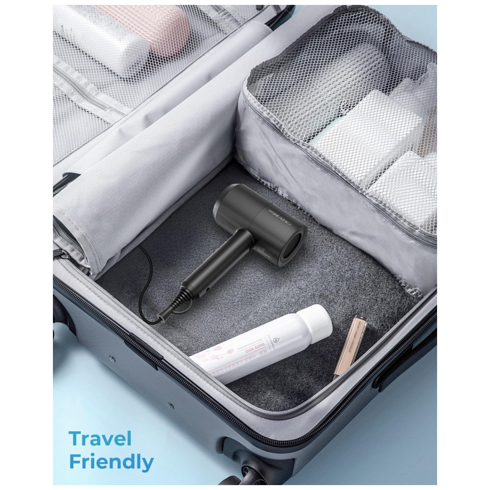 Baixo nível de ruído e função de prevenção de superaquecimento O secador de cabelo pesa cerca de 440 g , 0,97 lb reduzindo a carga sobre seus ombros ao usar.. O comprimento do cabo de alimentação é de 2 m. A tampa traseira destacável à prova de poeira evita que a poeira seja sugada para dentro do secador. Pode reduzir o ruído do cabelo cacheado. Se a temperatura constante de 57 C, a temperatura do cuidado com o cabelo e a temperatura do host forem muito altas, a energia será desligada automaticamente.