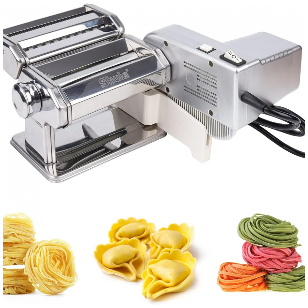 Máquina de Macarrão Elétrica Shule com Motor Manivela Manual e Rolos Multifuncionais