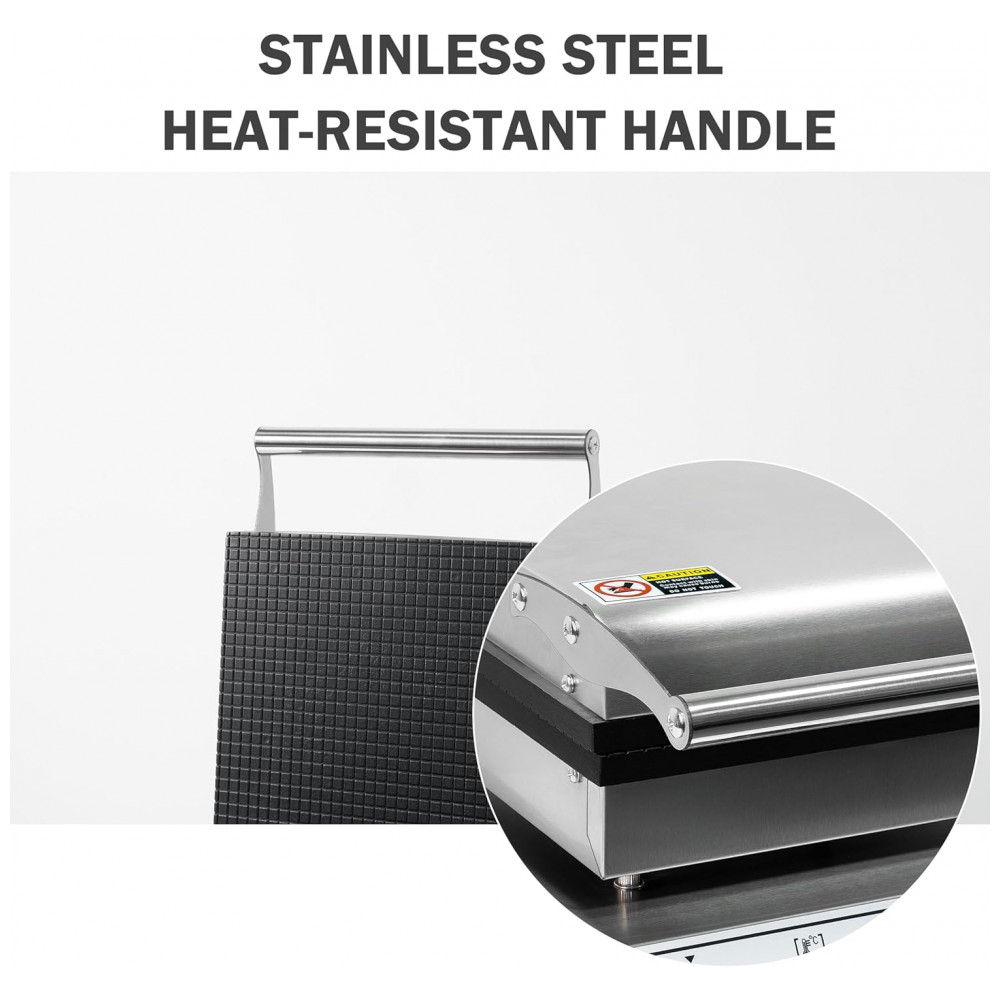 Design em Aço Inoxidável com Revestimento Antiaderente: A máquina para cone de sorvete SIJIDING é confeccionada em aço inox de alta qualidade com revestimento antiaderente em Teflon, garantindo durabilidade e facilidade de limpeza. Ideal para uso comercial, proporciona praticidade sem perder tempo na manutenção. Alta Eficiência: Com dois painéis de cozimento que aquecem simultaneamente, cada um com 25,4 cm (10 polegadas) de diâmetro, a máquina cozinha cones de waffle em apenas 1 minuto por unidade, permitindo produção contínua por mais de 10 horas. O revestimento antiaderente facilita a modelagem perfeita e mantém o ambiente organizado. Controle de Temperatura e Timer Ajustáveis: Equipado com um timer independente de 5 minutos e regulador de temperatura de até 300°C, você pode personalizar o tempo e a temperatura para diferentes receitas, com alerta sonoro ao término do ciclo para maior eficiência no preparo. Construção Robusta e Estável: Estrutura resistente em aço inox com design moderno e quatro pés antiderrapantes para estabilidade. O cabo grosso é antitérmico e antiderrapante, garantindo segurança durante o uso. Junções firmes entre os painéis asseguram durabilidade e uso confiável. Aplicações Versáteis: Perfeita para confeitaria, padarias, restaurantes, quiosques e lanchonetes, esta máquina produz cones de waffle em diversos formatos, permitindo adicionar chocolates, balas e outros enfeites para criar produtos atrativos e saborosos que agradam a todos. Experimente a praticidade e a eficiência da Máquina de Cone de Sorvete SIJIDING e transforme seu negócio ou evento com deliciosos waffles em cone.