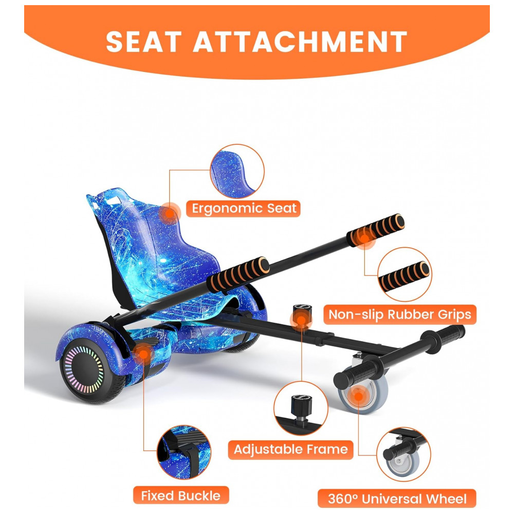 SIMATE Go Kart Branco para Hoverboard 65″ a 10″ – Assento Ergonômico Estrutura Ajustável Compatível com Diversos Modelos