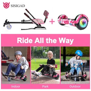 O Hoverkart SISIGAD transforma qualquer hoverboard de 6,5 polegadas em um divertido kart para crianças e adultos, proporcionando uma experiência de passeio segura e emocionante. A montagem é simples: o hoverboard pode ser usado imediatamente, e o assento deve ser montado pelo usuário. O modo kart possui design triangular de contato com o solo, centro de gravidade baixo e estrutura de tubo de aço de 4 polegadas espessado. O guidão revestido de esponja garante segurança enquanto proporciona controle preciso.