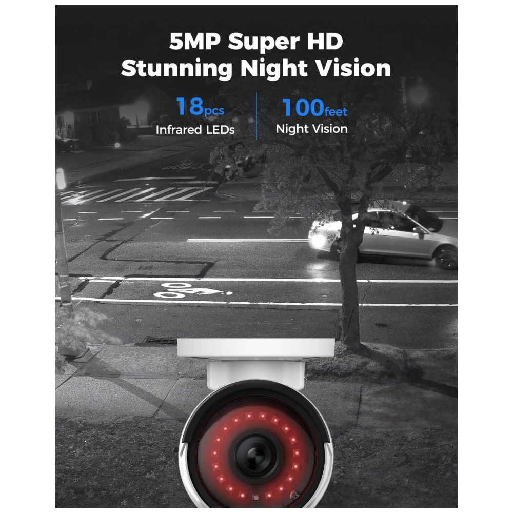 Impressionante Display HD Este sistema de câmera de segurança é exibido em uma imagem detalhada HD de 2560 × 1920, fornecendo aos usuários imagens nítidas durante o dia e à noite. Aproveite nosso recurso de Visão Noturna aprimorado, que oferece uma tela perfeita para até 30 metros.
