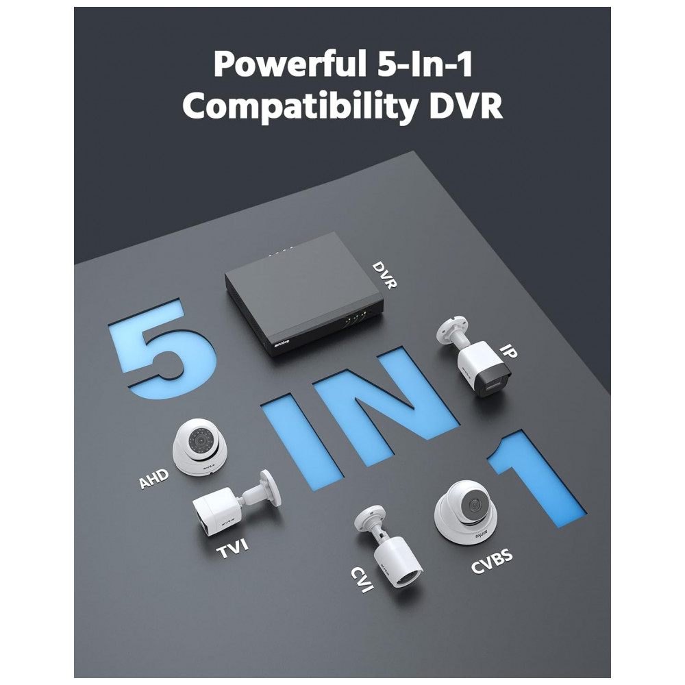 DVR de 1 x 8CH 5MP Lite com disco rígido de 1 TB pré instalado