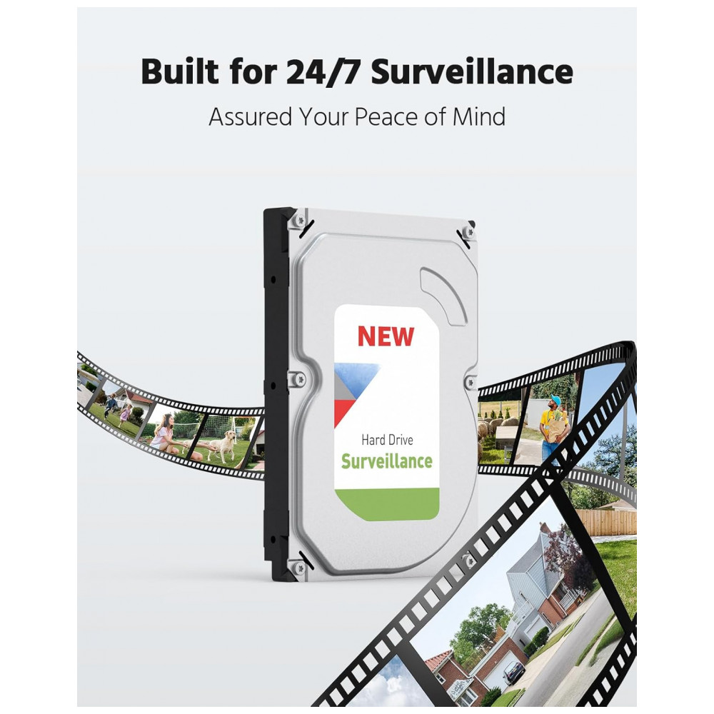 H.265 para gravação mais suave e mais longa Atualizado para H.265 , o tempo de gravação é prolongado e a largura de banda é reduzida. E um disco rígido de 1 TB incluído economiza despesas extras. Suporta HDD de até 10 TB, o pacote vem com HDD de 1 TB.