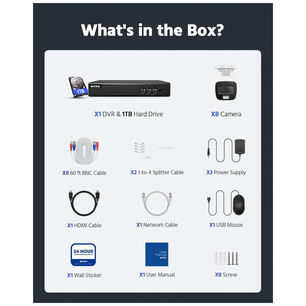 Sistema de Câmera de Segurança com Fio 8 Canais 1 TB Visão Noturna 8 Câmeras ANNKE Branca