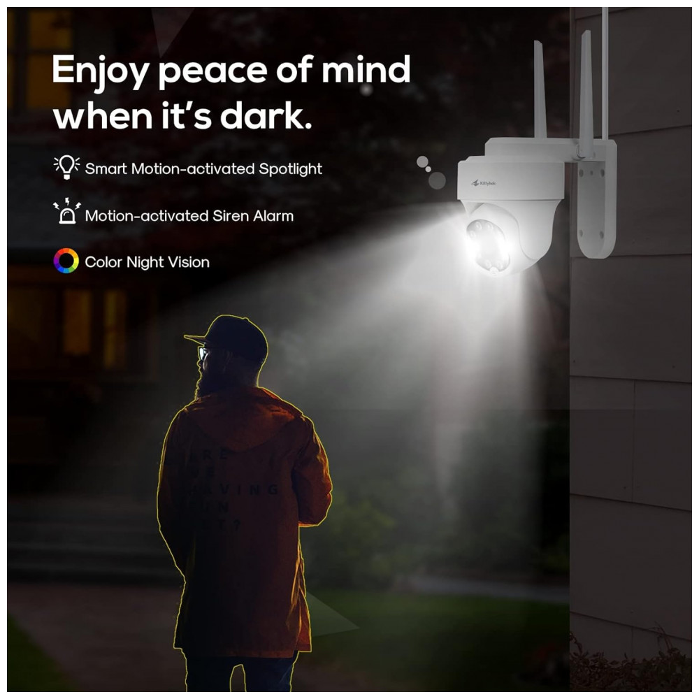 Cobertura de 360 Expanda sua cobertura com a câmera de segurança Wi Fi Pan Tilt 2K. Cubra todos os ângulos e elimine pontos cegos com a rotação vertical e horizontal da câmera. Aumente ou diminua o zoom digitalmente para ver todos os detalhes de perto e de longe.