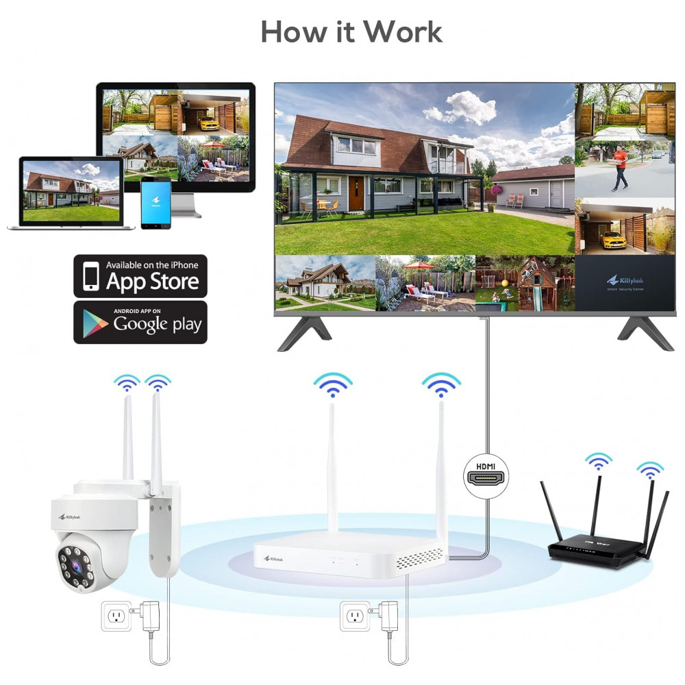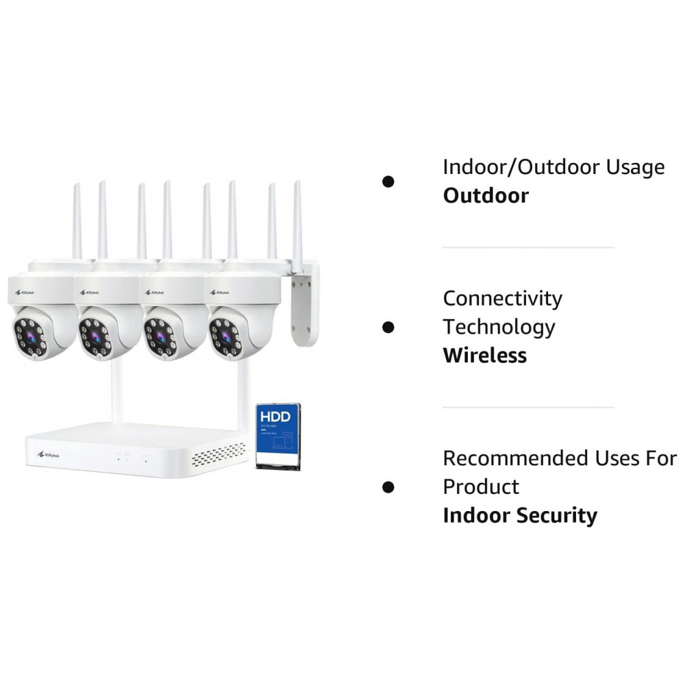 Sistema de Câmera de Segurança sem Fio 2K Wi Fi Kittyhokcom Cartão de 500GB