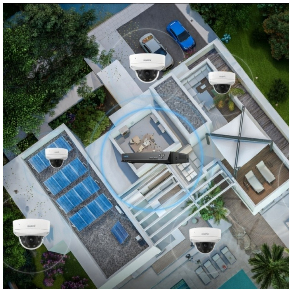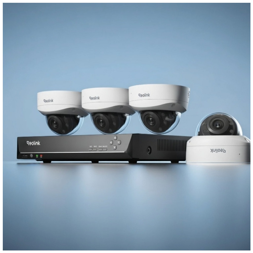 Sistema de vigilância profissional Reolink RLK8‑843V4 composto por 4 câmeras dome 4K 8MP modelo RLC‑843A e NVR PoE RLN8‑410 com HD de 2 TB. As câmeras utilizam sensor CMOS 1/2,8″, resolução 3840 × 2160 a 25 fps, compressão H.265, lente motorizada 2,7–13,5 mm com zoom óptico 5×, campo de visão ajustável de 123° a 39° na diagonal e proteção mecânica IK10, com vedação IP67 para uso externo. Oferecem visão noturna IR até 30 m, visão noturna colorida com holofotes LED 6500K, detecção inteligente de pessoas e veículos e áudio bidirecional integrado. O NVR RLN8‑410 dispõe de 8 portas PoE 10/100 Mbps, suporte a até 8 câmeras 4K, gravação contínua 24/7 em H.264/H.265, saída HDMI até 4K, acesso remoto via app Reolink (Windows, macOS, iOS, Android) e capacidade de armazenamento expansível até 12 TB, garantindo um sistema de CFTV robusto, escalável e sem mensalidades de nuvem.