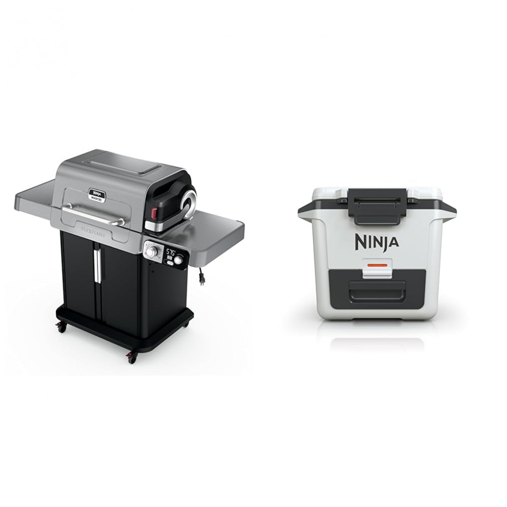 Conteúdo da embalagem: 1 churrasqueira Ninja FlexFlame PG301 com acessórios de cocção e 1 cooler rígido Ninja FrostVault 30 L FB131WH