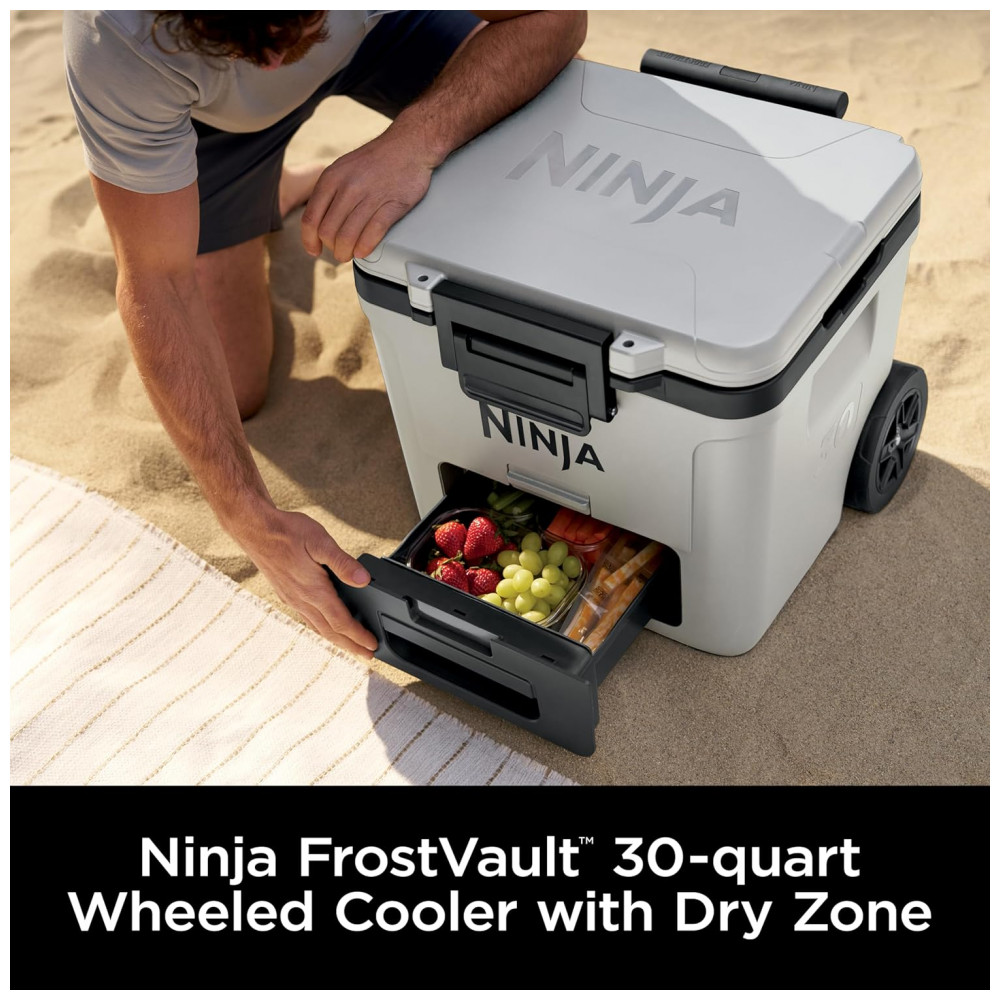 O cooler rígido FrostVault de 30 litros possui isolamento espesso para manter gelo por vários dias, com compartimento frontal tipo gaveta em zona seca que recebe o frio da área principal, mantendo alimentos em faixa próxima de refrigeração sem contato direto com gelo. A capacidade interna comporta até 48 latas sem gelo ou cerca de 26 latas com gelo, com construção robusta, tampa com trava e alças integradas para transporte em atividades externas.