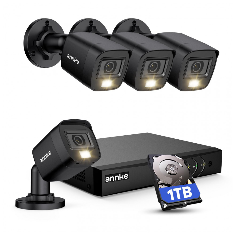 Sistema de Segurança com Fio Detecção de Movimento 8CH H.265 3K Lite 4 Câmeras ANNKE Preto