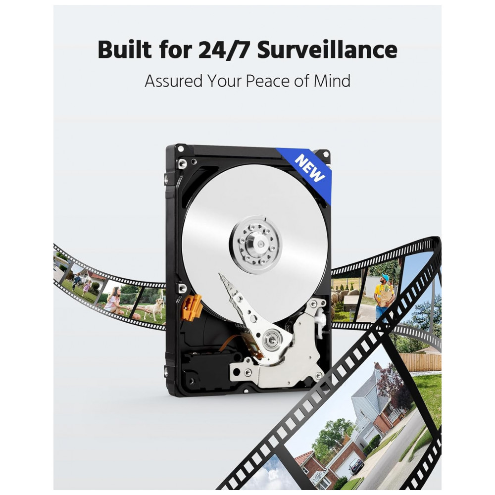 H.265 para gravação mais suave e mais longa Atualizado para H.265 , o tempo de gravação é prolongado e a largura de banda é reduzida. E um disco rígido de 1 TB incluído economiza despesas extras. Suporta HDD de até 10 TB, o pacote vem com HDD de 1 TB.
