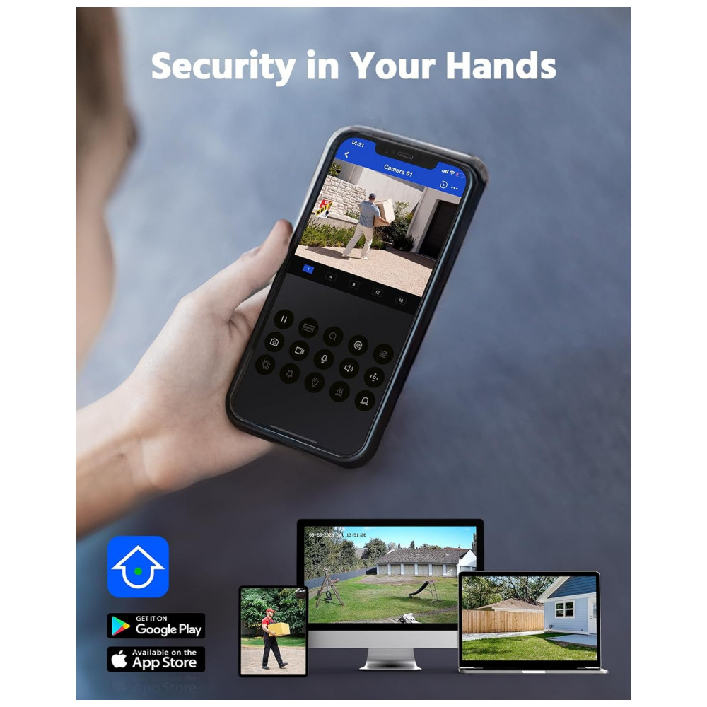 Sempre que ameaças reais são detectadas, empurrões imediatos aparecem no telefone e você pode conferir via 3G , 4G , 5G , Wi Fi. Por mais longe que você esteja de casa, este sistema de segurança confiável garante sua tranqilidade dia e noite.