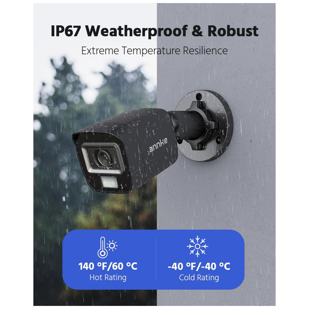 IP66 e caixa de ABS de alta qualidade Com IP66 à prova de intempéries e a melhor caixa externa de ABS, essas câmeras com fio podem ficar de frio a quente, de 40 C , 40 F a 60 C, 140 F. Cada detalhe foi projetado para uma vida útil mais longa.