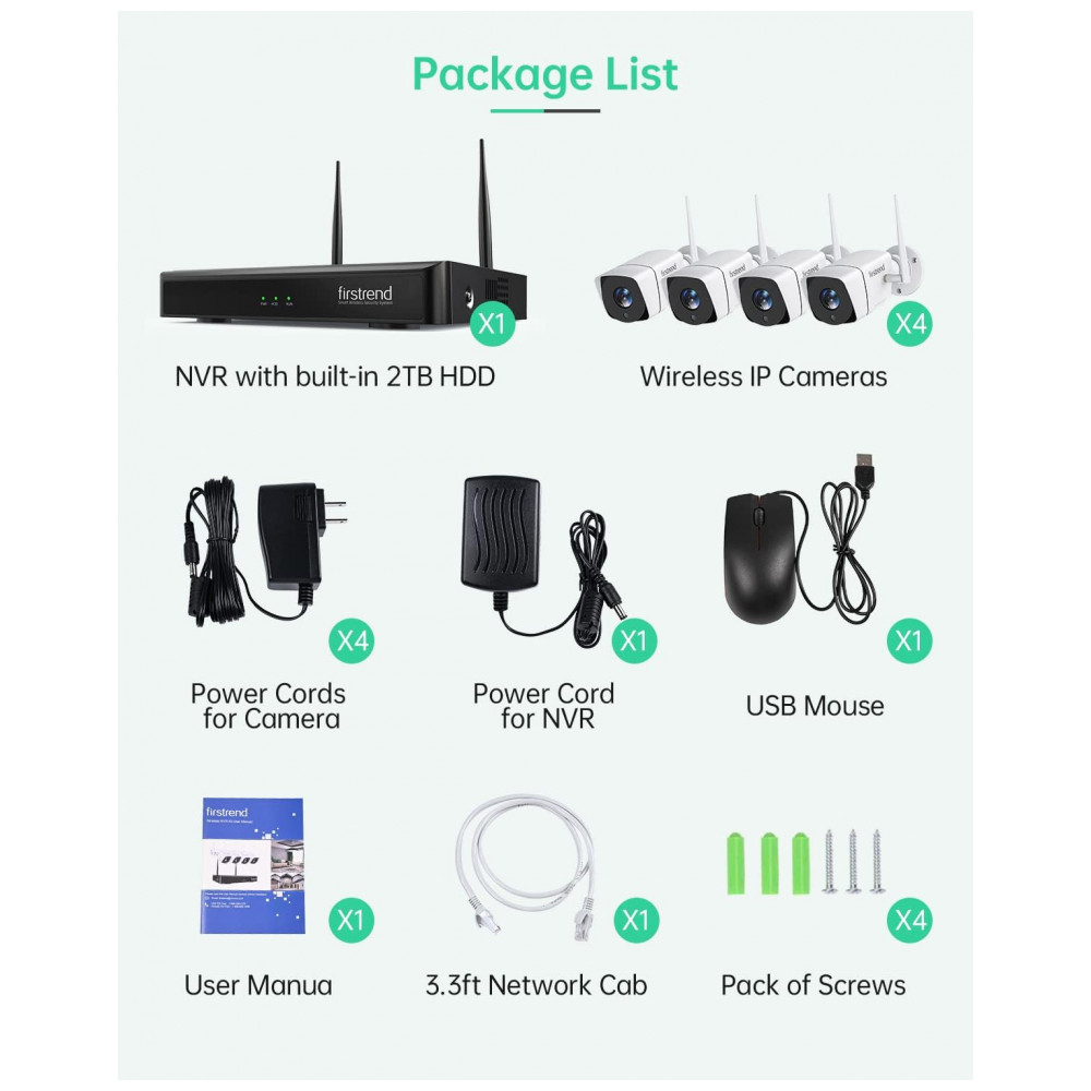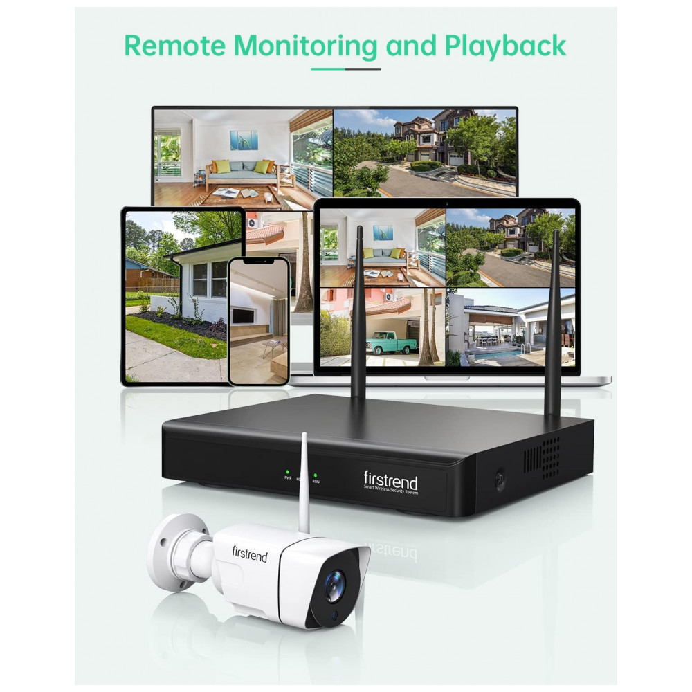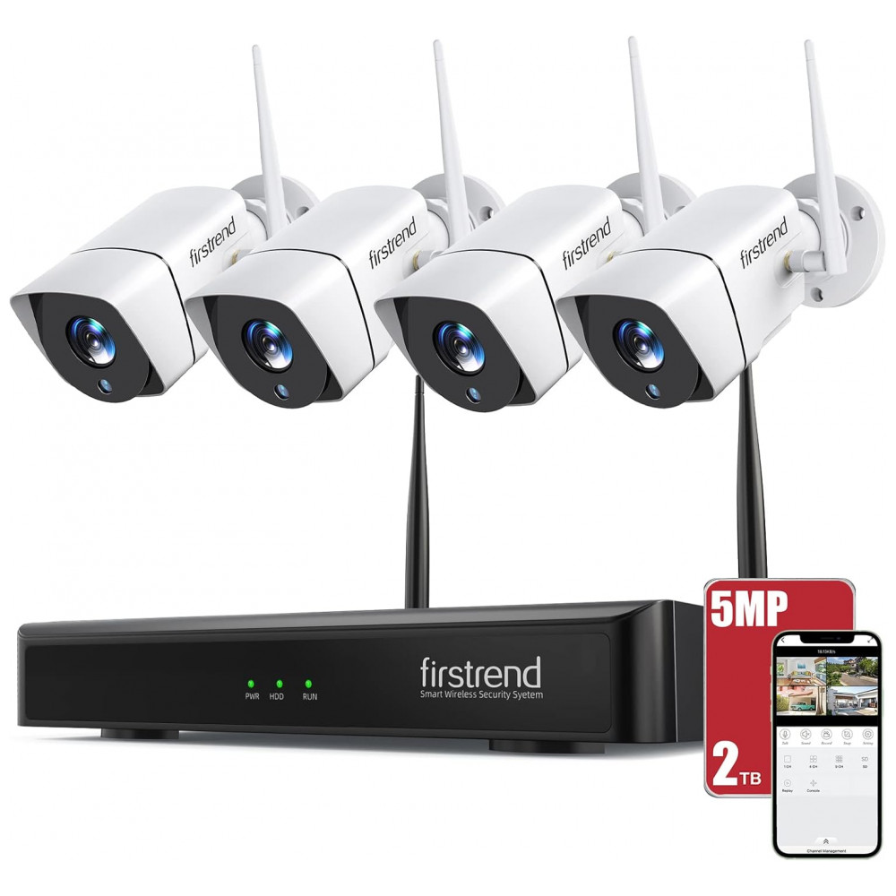 Sistema de Segurança sem Fio 5 MP 8 Canais 2TB NVR 4 Câmeras Firstrend