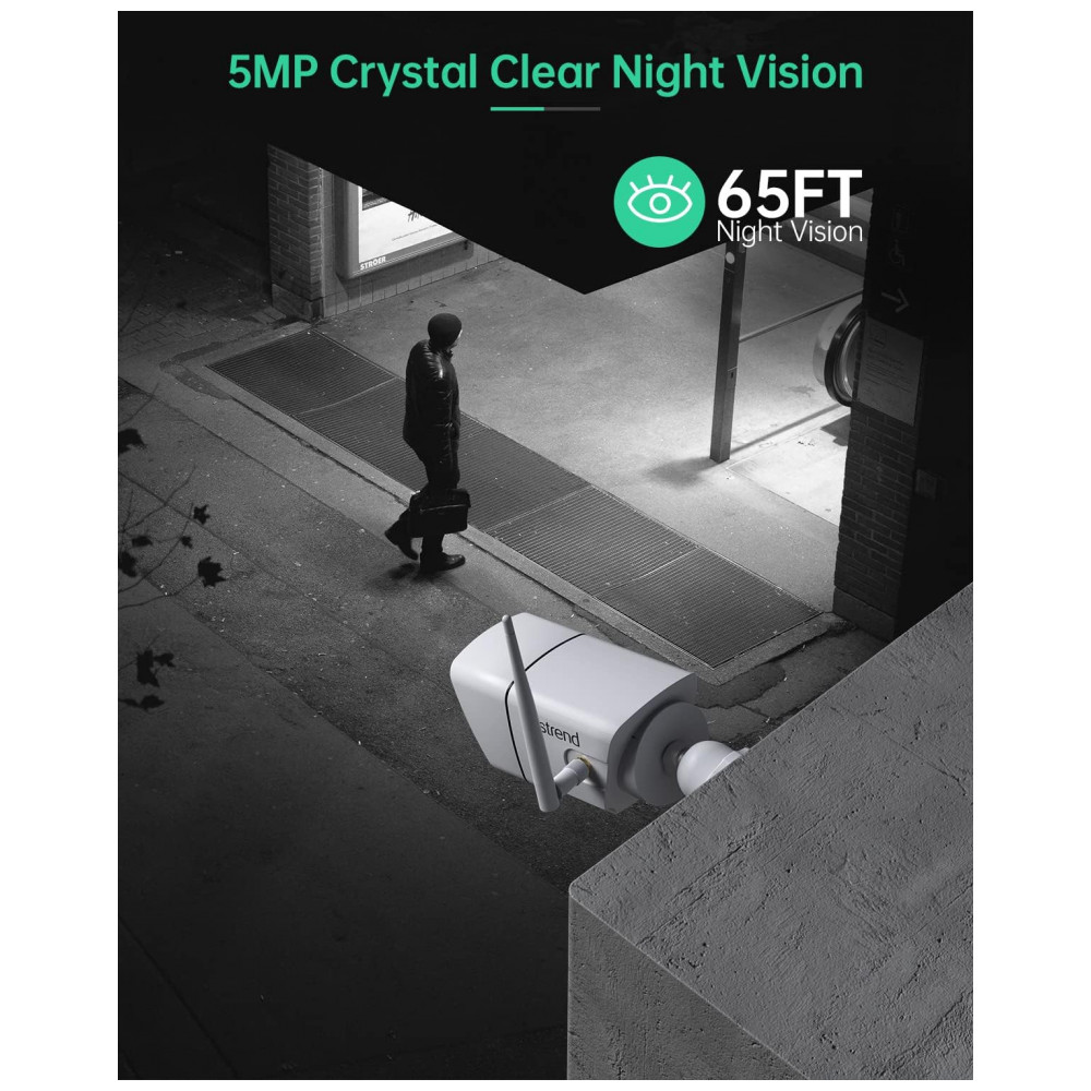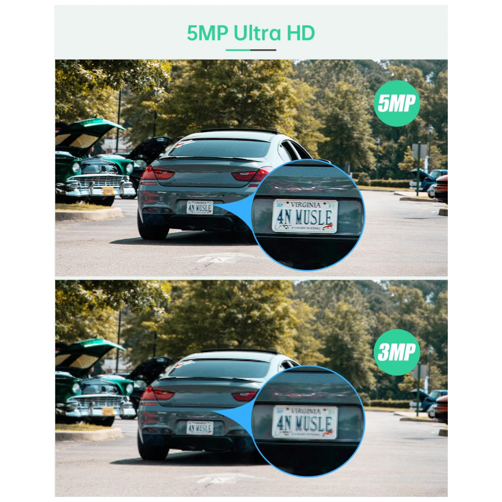 Visão diurna e noturna atualizada de 5MP Este sistema de câmeras sem fio é atualizado para 5MP Ultra HD para visão diurna e noturna Com essas câmeras IP, você obteria uma qualidade de imagem super clara. As câmeras de CFTV também são equipadas com luzes IR, proporcionando uma visão noturna clara de até 19 metros. Obtenha mais detalhes em resolução de 5MP, durante o dia e a noite, com este sistema.