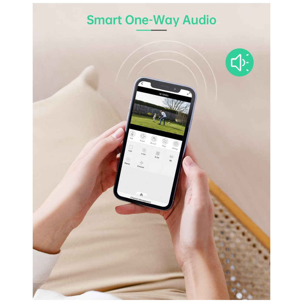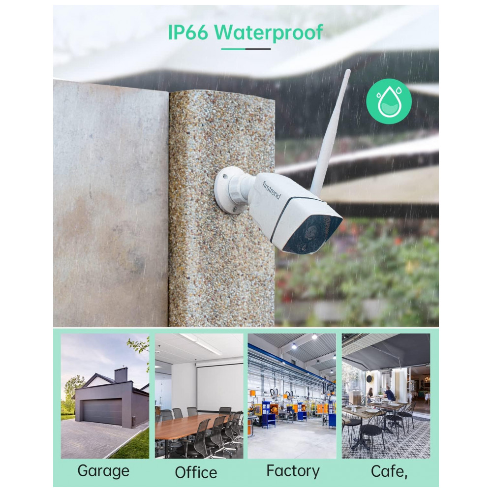 Atualize o áudio bidirecional nosso sistema de segurança sem fio foi atualizado com áudio bidirecional. Você podia ouvir a voz de pessoas ou itens sobre as câmeras e conversar com elas. E todas as câmeras são à prova dágua IP66. Todas as funções de teses tornam nossas câmeras sem fio uma escolha melhor para uso interno e externo. Perfeito para usar em casa, negócios, café, fazenda, etc.
