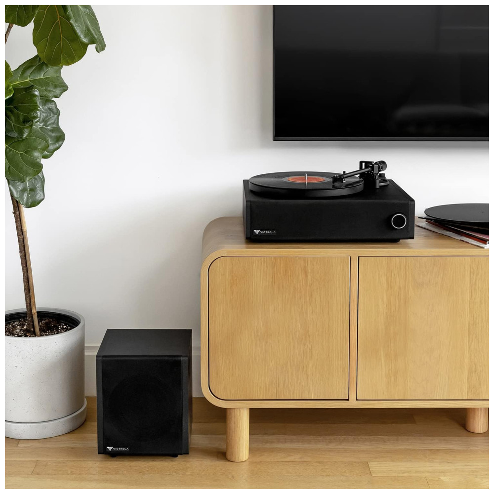 Sistema de Som com Toca Dicos de Vinil Integrado Subwoofer sem Fio e Streaming Bluetooth 5.0 Victrola Premiere V1 Preto