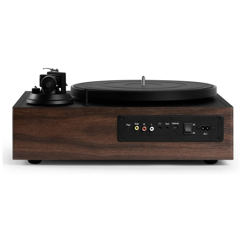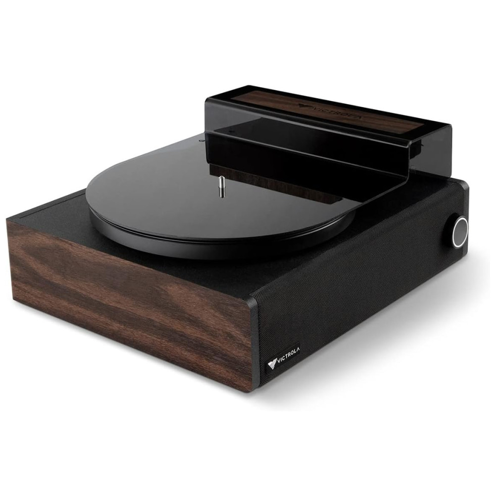 O Victrola Premiere V1 Soundbar é um sistema de som com toca-discos de vinil, alto-falantes estéreo integrados de 20W e 10W, além do subwoofer amplificado Premiere S1. Com capacidade para reproduzir discos, LPs e álbuns de 33 1/3 e 45 RPM, este toca-discos possui braço de alumínio ajustável e botão antiskate para garantir uma reprodução de som realista e incrível. O subwoofer de home theater Victrola S1 é alimentado por um amplificador integrado de 70 W, eliminando a necessidade de um receptor. O toca-discos se conecta facilmente ao subwoofer via Bluetooth, que por sua vez, pode ser conectado a outros sistemas de som por meio da entrada monoRCA ou Bluetooth. O reprodutor de vinil vem com um cartucho magnético móvel Victrola VPC190 balanceado de fábrica. O toca-discos V1 e o subwoofer S1 possuem acabamento em vinil de madeira premium e design sofisticado, complementando-se perfeitamente em qualquer ambiente. Este sistema de música de giratório de 2.1 canais é ideal para quem busca áudio poderoso e qualidade de som excepcional tanto para músicas analógicas quanto digitais. Além disso, o toca-discos Victrola oferece uma experiência auditiva clara e nítida, sem comprometer a qualidade do som e a resposta dos graves, graças à tecnologia antivibração pendente de patente. Com 115 anos de experiência na produção de toca-discos vintage, acessórios de toca-discos de madeira para os centros de música modernos e elegantes mais recentes, a Victrola é a escolha ideal para quem deseja criar memórias musicais para toda a vida com seus entes queridos.