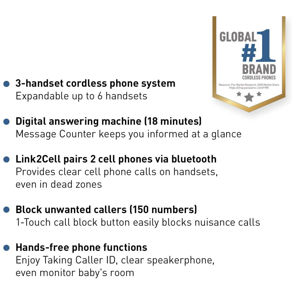 Sistema de Telefone sem fio Expansível Bluetooth e Assistente de voz 3 Aparelhos Panasonic