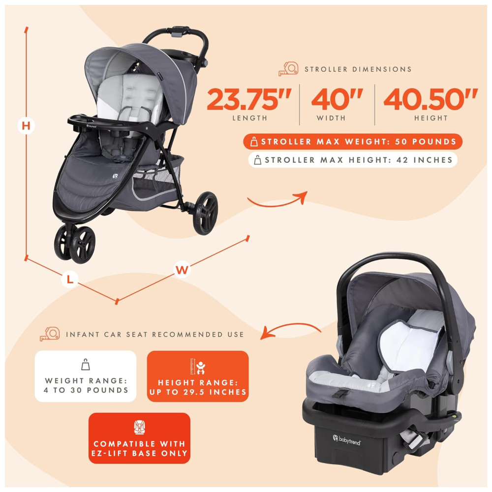 Sistema de Viagem Baby Trend EZ Ride com Cadeirinha de Bebê EZLift Cinza Dash