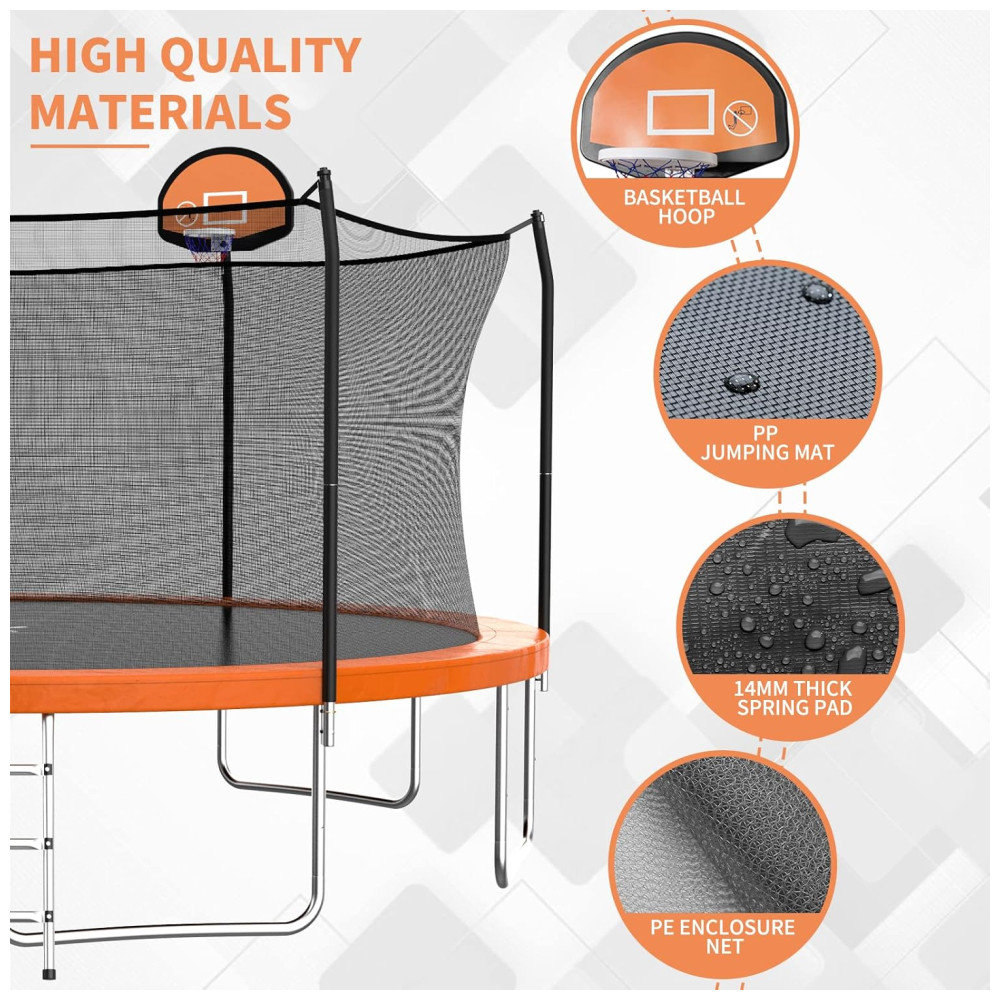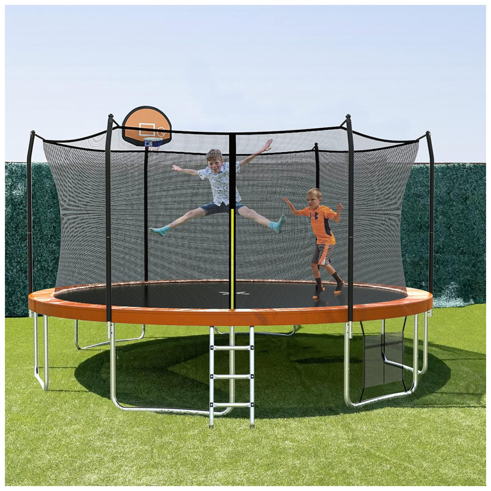 SKOK Cama Elastica Infantil com Diâmetro Cesta de Basquete e Rede de Proteção para até 180 kg Laranja