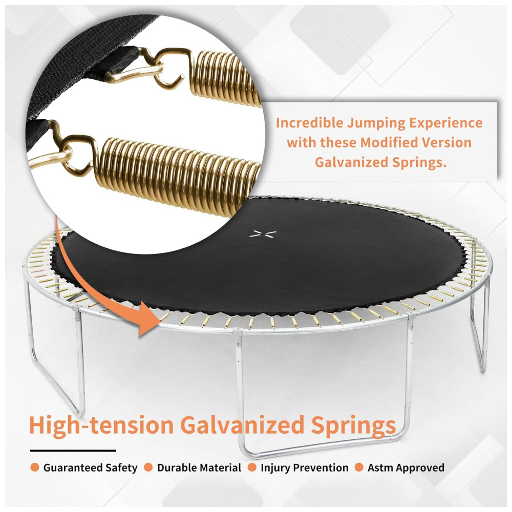 Salto de alta qualidade resistente ao desgaste e de alta densidade, o tapete de salto resiste a alta pressão, fornece força de recuperação inigualável Molas longas de para boa elasticidade. Cada mola é feita de aço e possui um revestimento resistente à ferrugem para uma vida mais longa. Trampolim Capacidade máxima de peso de até 180 kg.