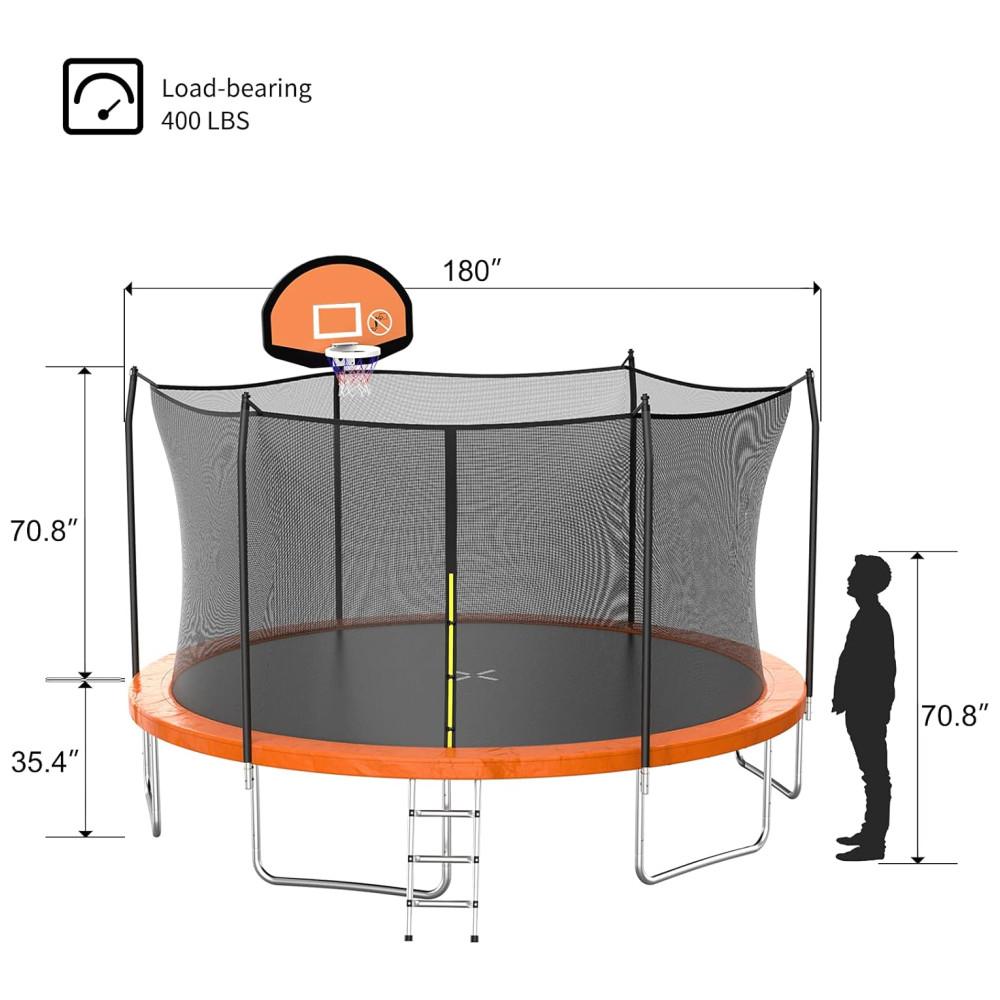 Certificado de segurança ASTM A segurança sempre é a principal prioridade, nosso trampolim infantil é composto de materiais de alta qualidade e vários acessórios. O trampolim foi testado e aprovado com especificações de segurança padrão ASTM F381, ASTM F2225 15. Deixe você e seus filhos brincarem com segurança no trampolim