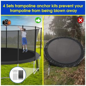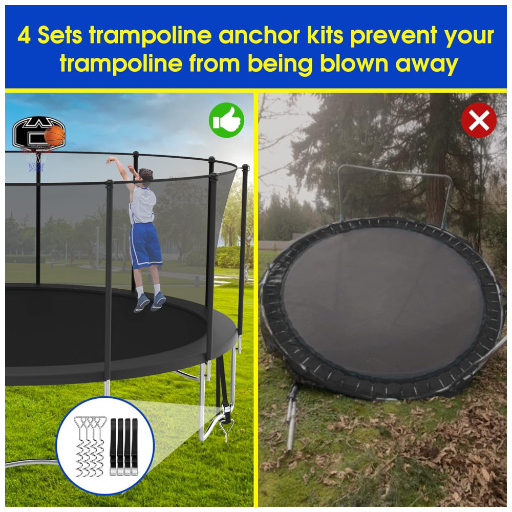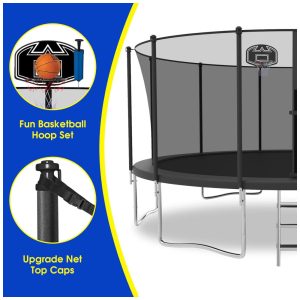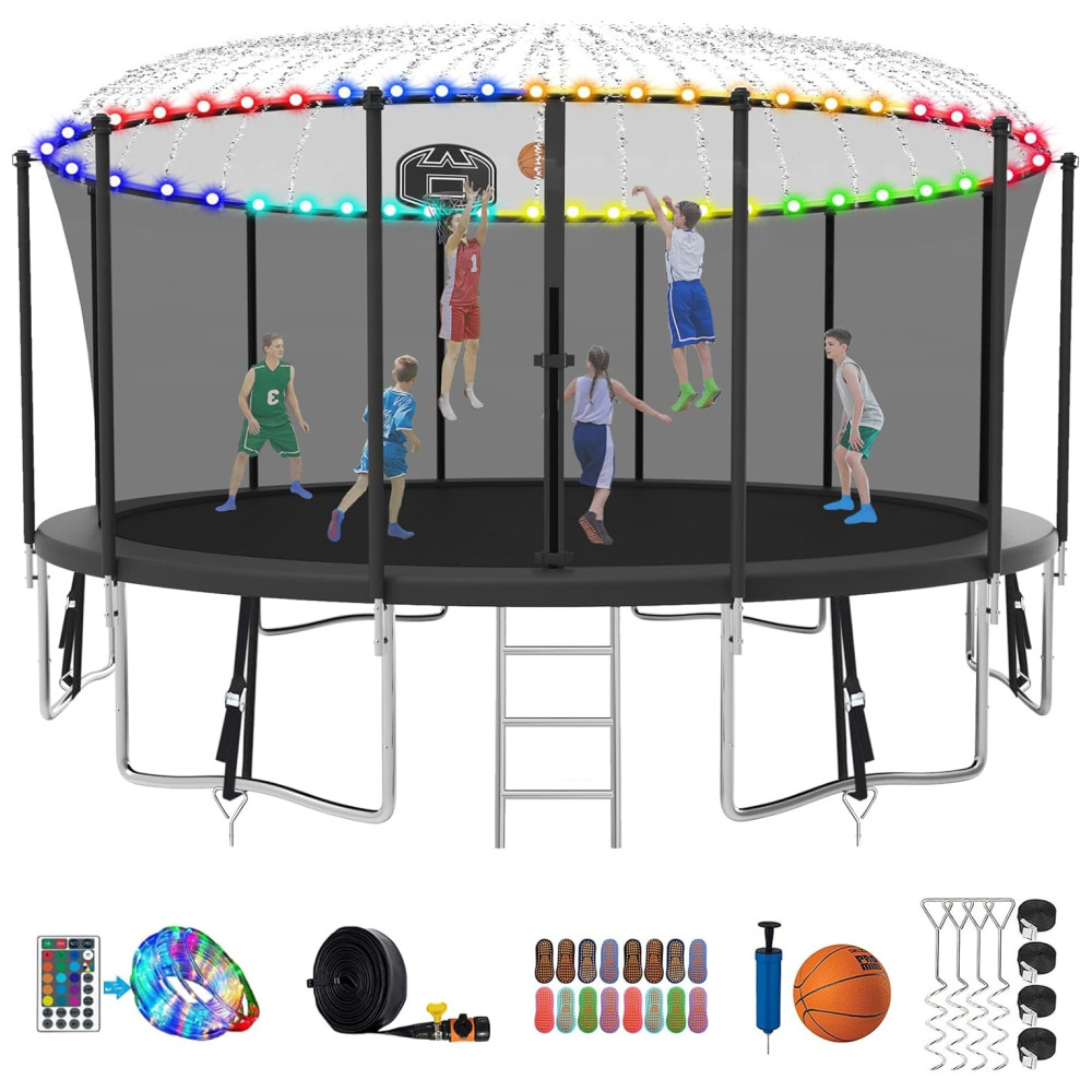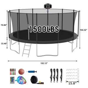 SKYUP Tranpoline 1500LBS 16 15 14 12 FT Tranpoline para 7 10 crianças e adultos Tranpoline ao ar livre à prova de vento com rede de gabinete cesta de basquete fácil de instalar Last Long ASTM aprovado 16FT preto com meias de sprinkler leve