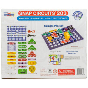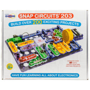 O Snap Circuits 203 é um kit educacional inovador que permite às crianças a partir de 8 anos explorar o mundo da eletrônica de forma prática e divertida. Com mais de 200 projetos, o kit oferece uma introdução segura e envolvente aos conceitos de circuitos elétricos.