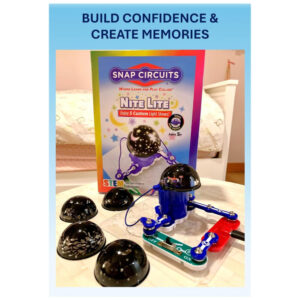 O Snap Circuits Nite Lite é um kit educacional inovador que permite às crianças a partir de 5 anos explorar o mundo da eletrônica e da projeção de luzes de forma prática e divertida. Com 5 projeções diferentes, o kit oferece uma introdução segura e envolvente aos conceitos de circuitos elétricos e projeção de imagens.