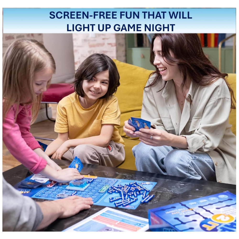 Cada jogador recebe um conjunto de peças e cartas, e o objetivo é ser o primeiro a conectar sua lâmpada à fonte de energia, criando um caminho elétrico eficiente. O jogo estimula o pensamento estratégico, a resolução de problemas e o entendimento básico dos princípios da eletricidade, tudo de forma lúdica e interativa.
