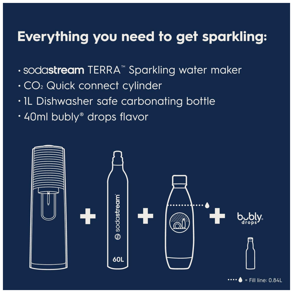 Nome do Modelo: SodaStream Terra Sparkling Water Maker (Preto) com CO2, Garrafa DWS e Bubly Drop,