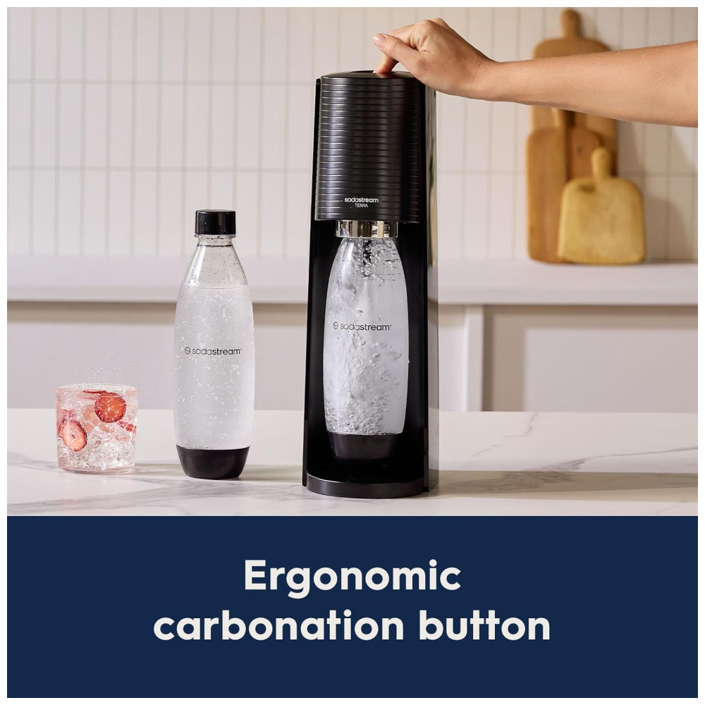 SodaStream Terra: Máquina de Fazer Água com Gás STARTER KIT em Preto EcoAmigável Sem Pilhas – Transforme sua Hidratação