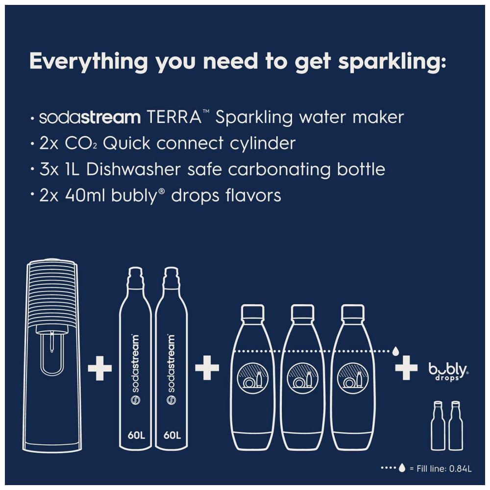 SodaStream Terra Sparkling Máquina de fazer água Bundle White: Faça Bebidas Personalizadas em Casa!
