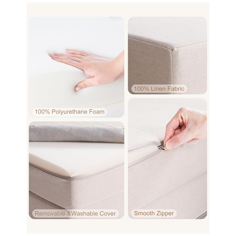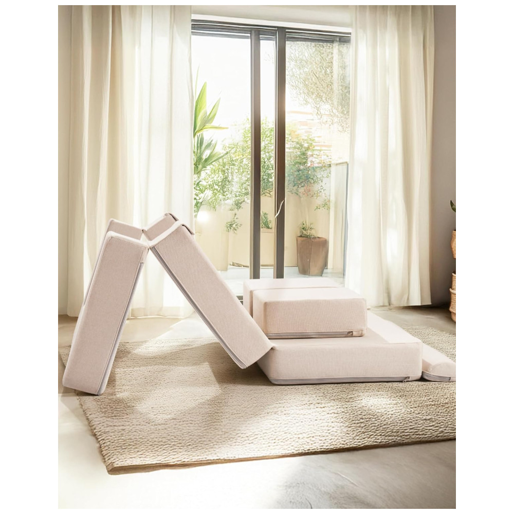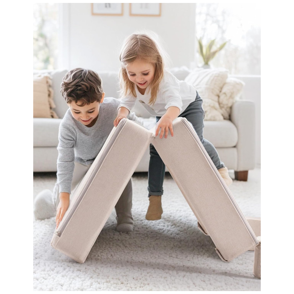 Desperte a criatividade dos seus filhos com o sofá Nugget da ROBUD! Este sofá modular se transforma em mesa, fortaleza, palco de marionetes ou esconderijo secreto em segundos. Com almofadas arqueadas que permitem infinitas combinações, ele estimula a criatividade, reduzindo o tempo em frente às telas. Feito de espuma de alta densidade ultra macia e cantos arredondados para garantir segurança ao escalar. Compacto e fácil de montar, chega comprimido para reduzir a pegada de carbono, com capas de linho que não amassam e são fáceis de lavar. Mais do que um sofá, é um brinquedo STEM disfarçado de móvel! Ideal para construir percursos de obstáculos, resolver quebra-cabeças espaciais ou inventar histórias, desenvolvendo habilidades motoras, lógica e trabalho em equipe. Resistente e durável, feito para imaginações, com capas resistentes a encolhimento e espuma de alta qualidade que sobrevive a pulos, derramamentos e brincadeiras imaginárias. Fácil de limpar e manter, resistente a desbotamento e abrasão, garantindo anos de diversão sem preocupações!