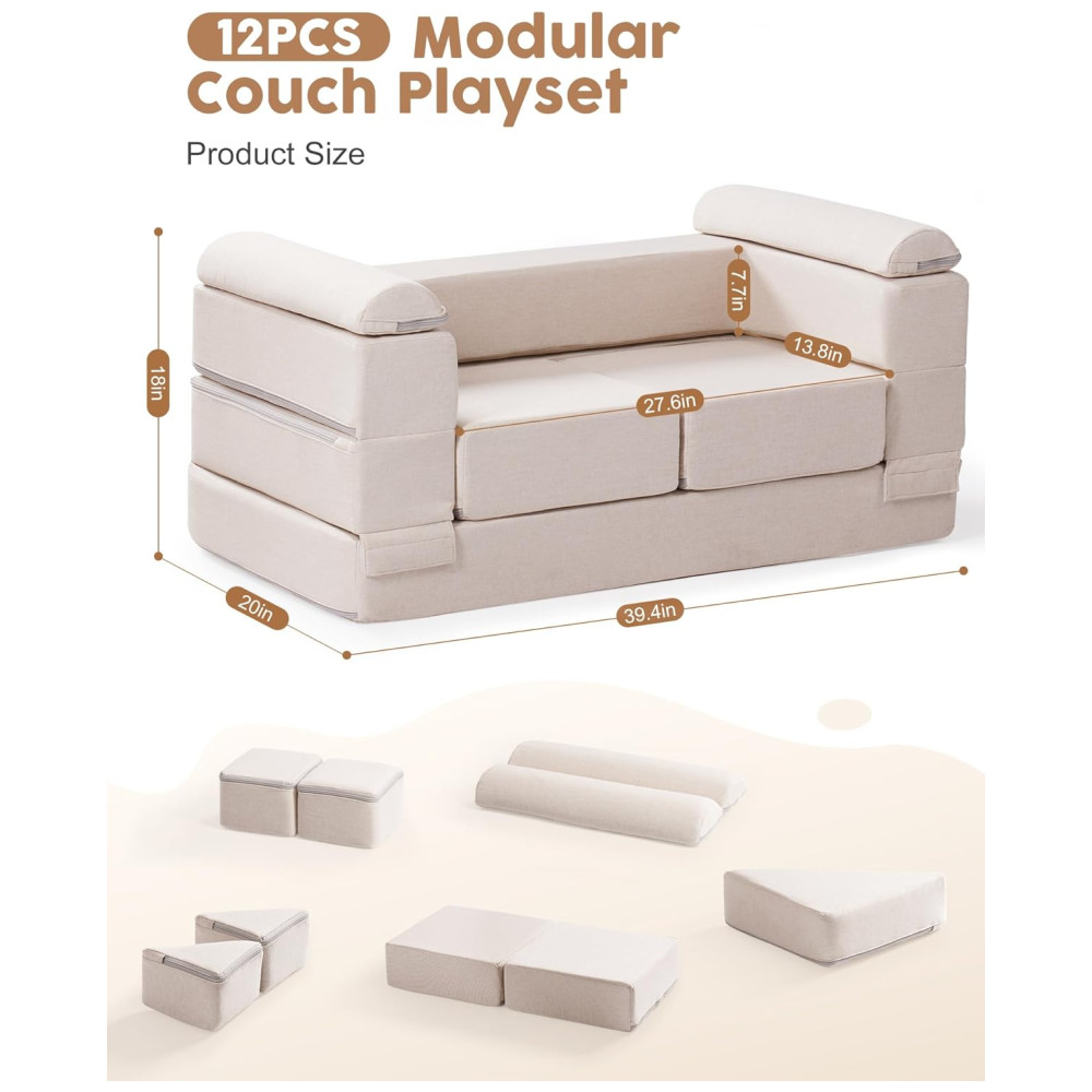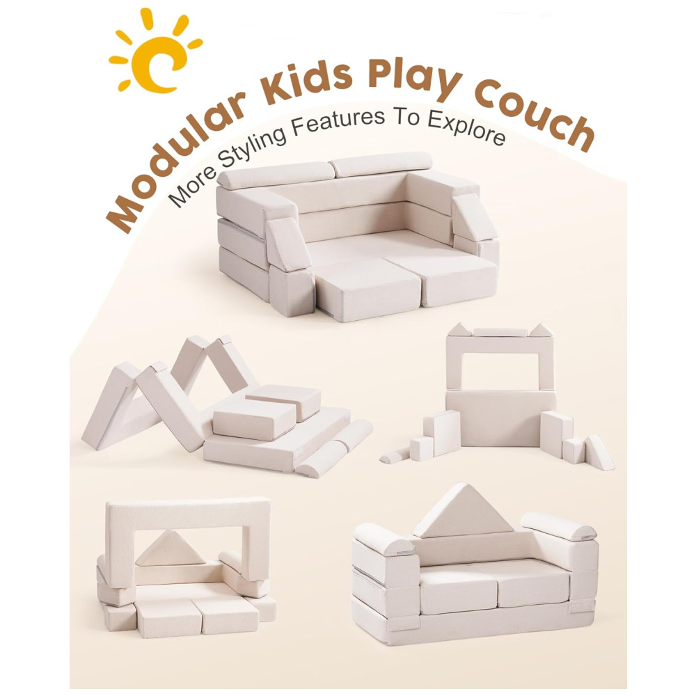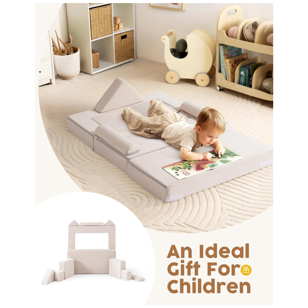 Sofá Educativo ROBUD Nugget Modular Bege para Crianças Sofá DIY Lavável para Brincar na Sala de Jogos Quarto Berçário – WG411