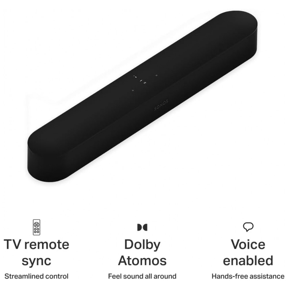 Sonos Beam Gen 2 Soundbar com Dolby Atmos Controle por Voz Wi-Fi HDMI eARC Trueplay Design Compacto e Elegante – Preto Fosco