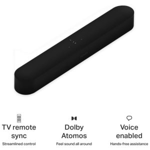 Sonos Beam Gen 2 Soundbar com Dolby Atmos Controle por Voz Wi-Fi HDMI eARC Trueplay Design Compacto e Elegante – Preto Fosco