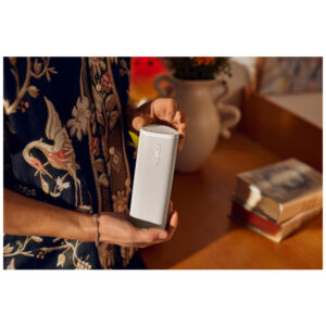 O Sonos Roam 2 branco é um alto-falante portátil inteligente, leve e resistente, ideal para uso interno e externo. Conta com certificação IP67, garantindo resistência à água e poeira, podendo ser submerso em até 1 metro de água por 30 minutos. O som estéreo é claro e poderoso, e o ajuste automático Trueplay adapta o som ao ambiente para qualidade otimizada.