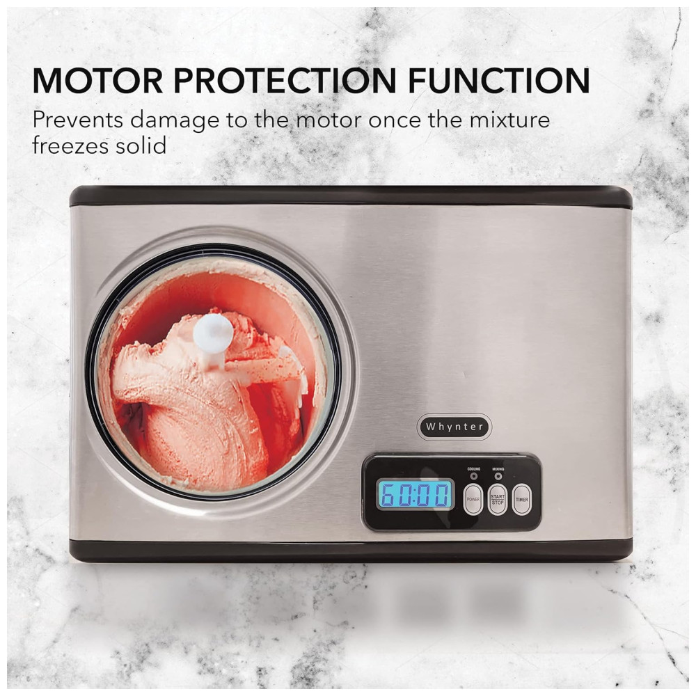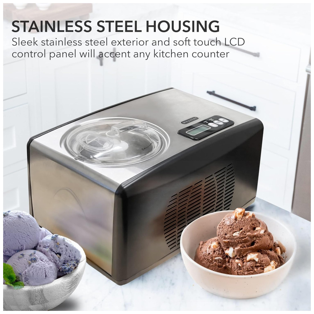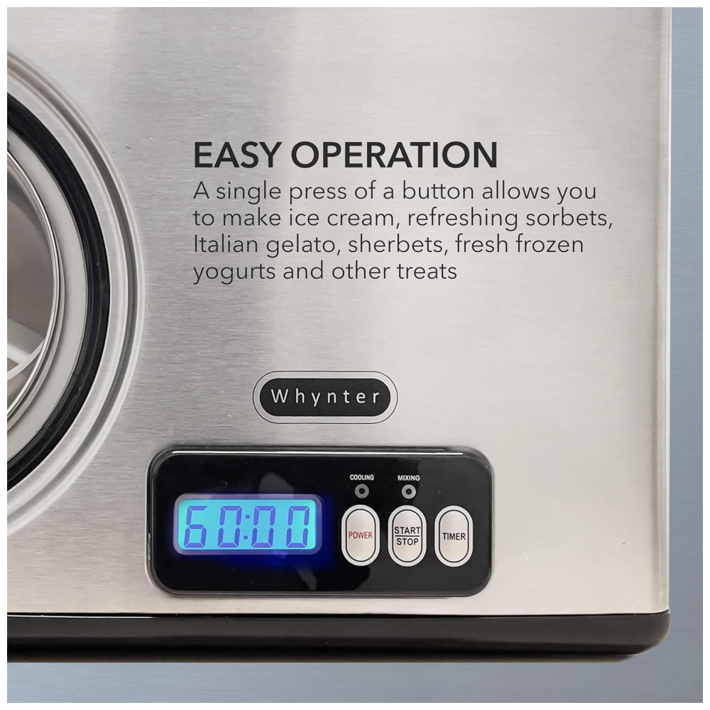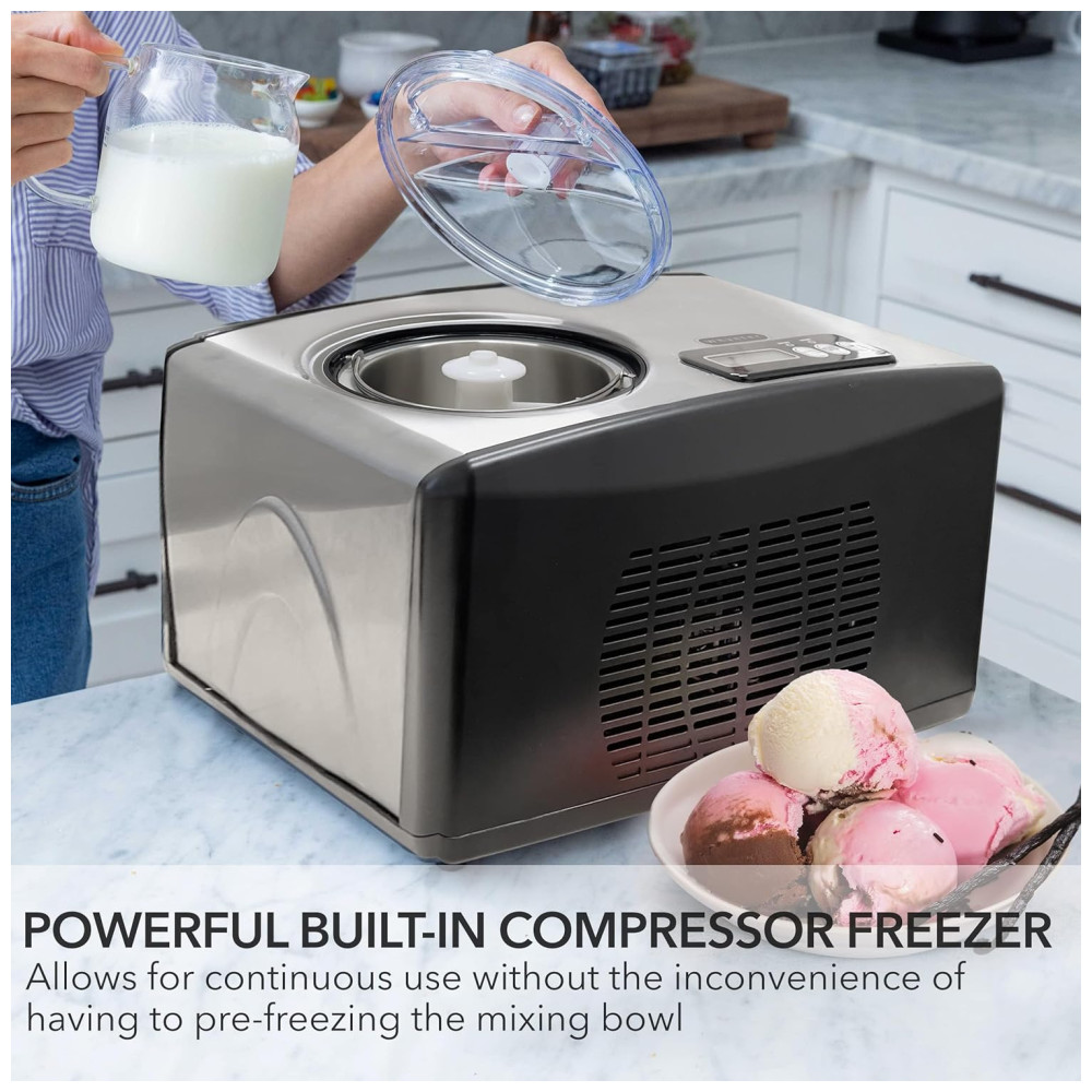 Com a sorveteira de sobremesas congeladas Whynter ICM 15LS de aço inoxidável, você pode fazer uma variedade de sobremesas deliciosas em cerca de 30 40 minutos. Esta máquina de sorvete autocongelante versátil permite que você não apenas faça sorvete premium, mas também sorvetes refrescantes, gelato italiano, sorvetes, iogurtes congelados frescos e outras guloseimas. Nossa sorveteira profissional padrão oferece recursos premium não encontrados em fabricantes de sorvete baratos. Um congelador de compressor poderoso integrado permite o uso contínuo sem o inconveniente de ter que pré congelar o copo de mistura. não só é muito mais fácil, mas também tem um sabor muito melhor