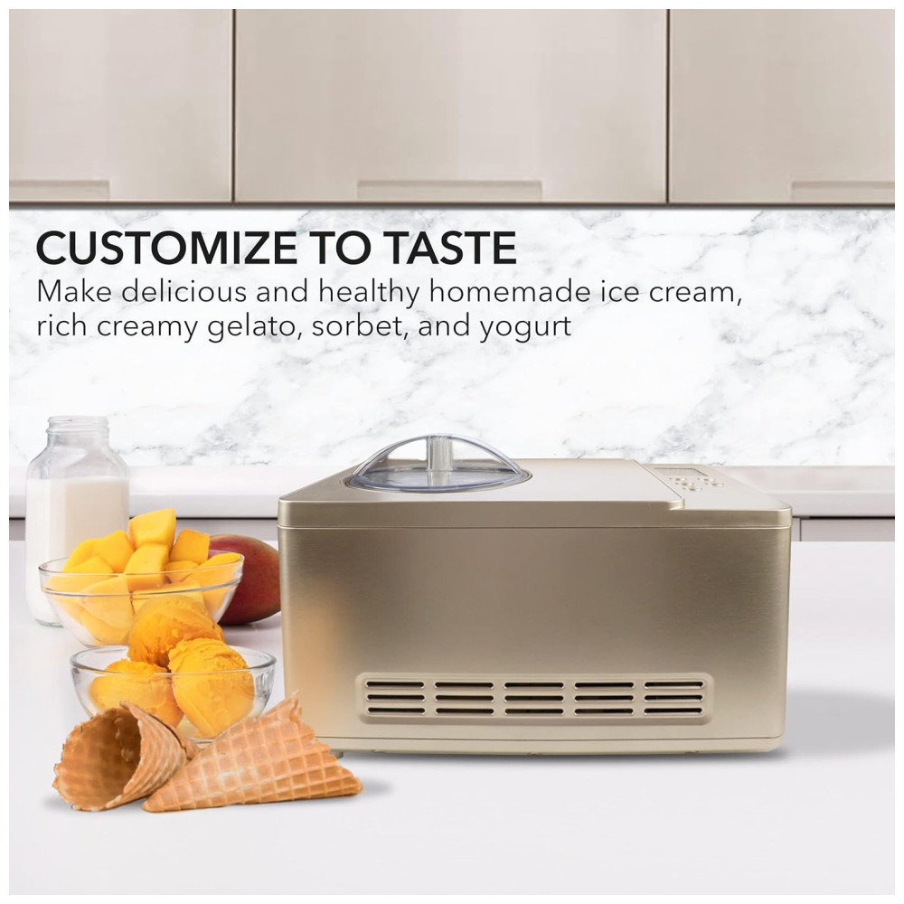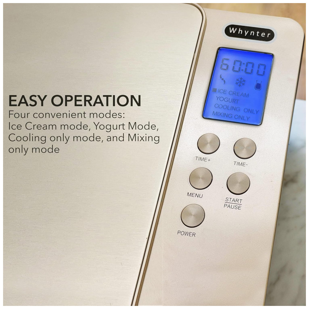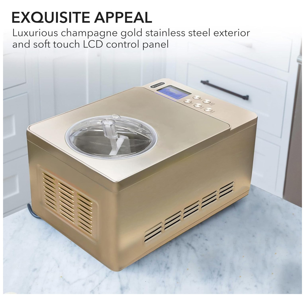 Sorveteira Elétrica 2 Litros Tigela Aço Inoxidável Função de Iogurte 110v WHYNTER ICM 220CGY Dorado