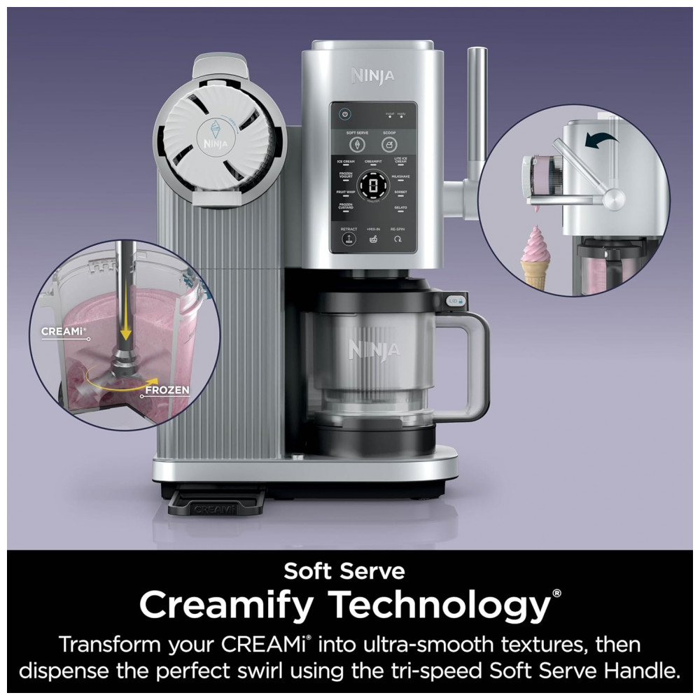 A sorveteira Ninja CREAMi Swirl NC701 foi desenvolvida para preparo doméstico de sorvetes, soft serve, sorbets, milkshakes, frozen yogurt e outras sobremesas congeladas em porções individuais. O sistema utiliza potes de 473 ml que recebem a base líquida, são congelados e posteriormente processados pela pá interna, transformando o bloco congelado em sobremesa com textura cremosa ou aerada conforme o programa selecionado.