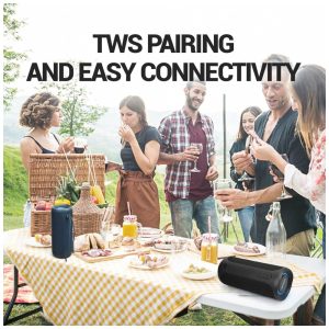 A função TWS pode sincronizar dois alto falantes Surgeboom 3 Bluetooth. Emparelhe 2 alto falantes Surgeboom 3 para obter um incrível som poderoso de 70 W e contrabaixo, perfeito para home theater, festas, camping