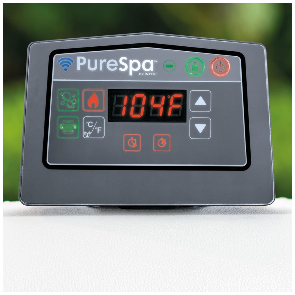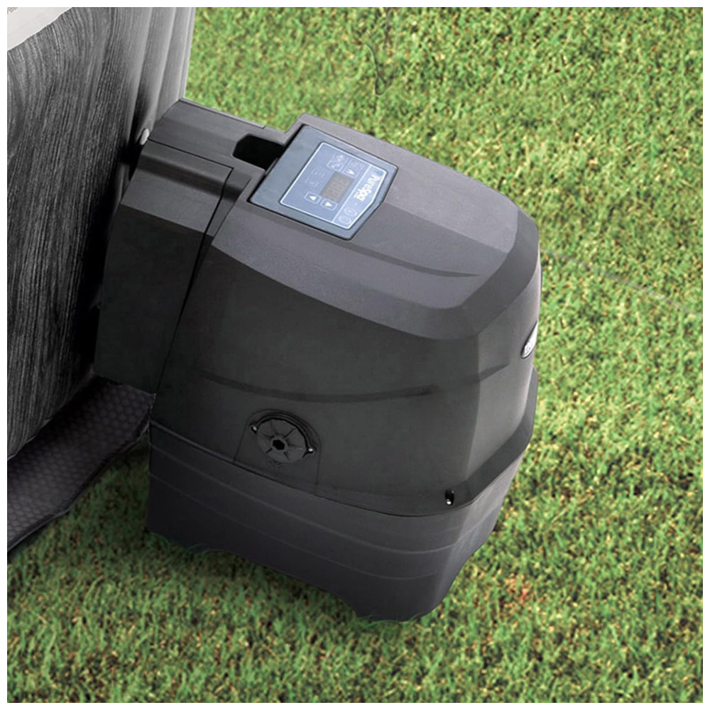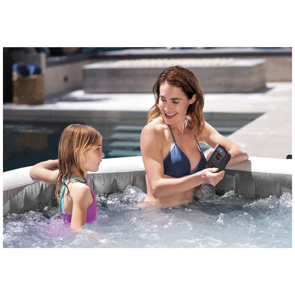 O spa espaçoso com banheira de hidromassagem inflável para 6 pessoas modelo 28441EP apresenta 140 jatos calmantes de alta potência e temperatura da água de até 104 graus Fahrenheit